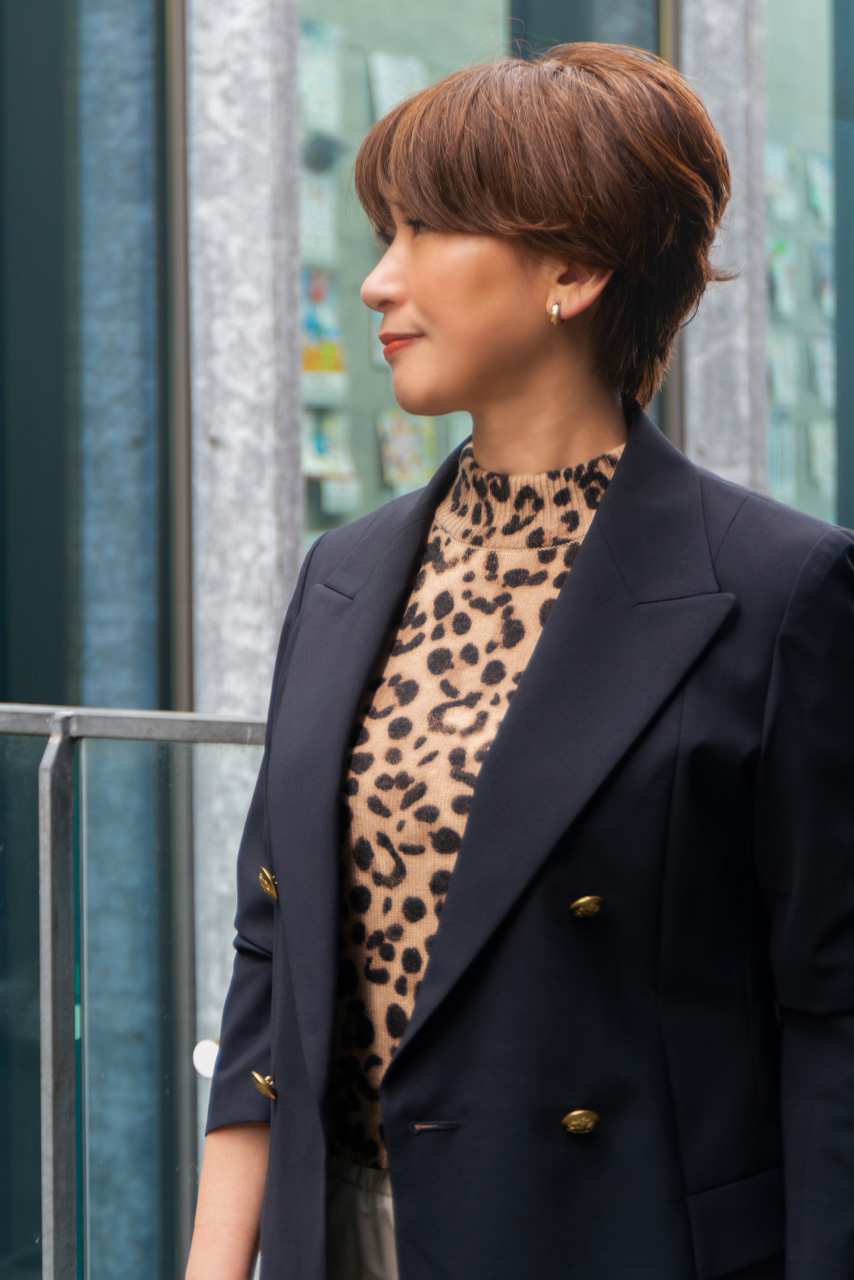 ネイビー×レオパードで魅せる、秋のジャケットスタイル