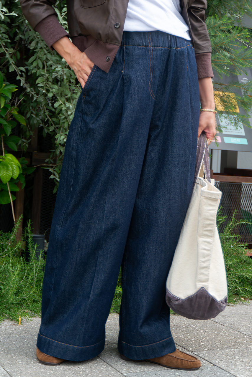 バッグはキャンバス素材のトートで、ナチュラルな雰囲気に。 『神戸山の手スタイル』なら、足元にはスエードローファーを合わせて、季節感と品をプラス。
